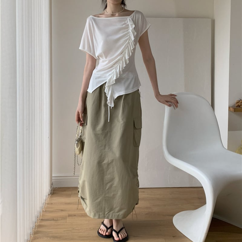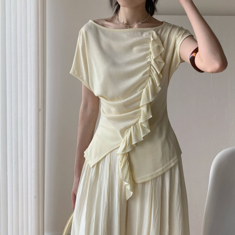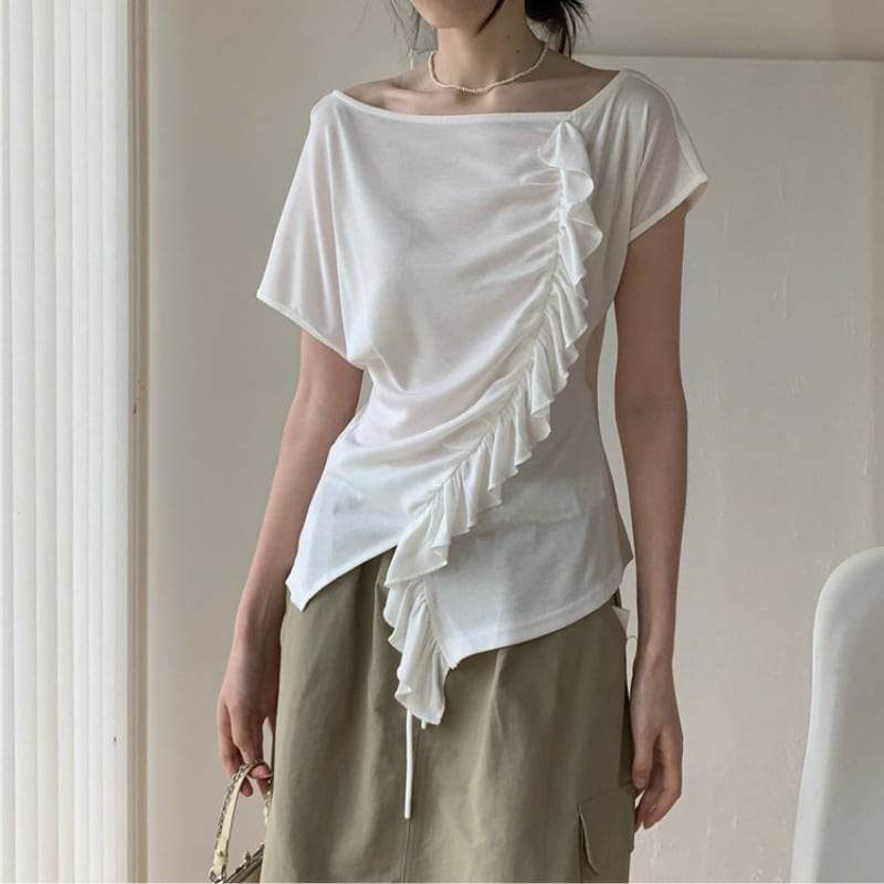 フリルドレープアシンメトリーTシャツ♢全2色 13029