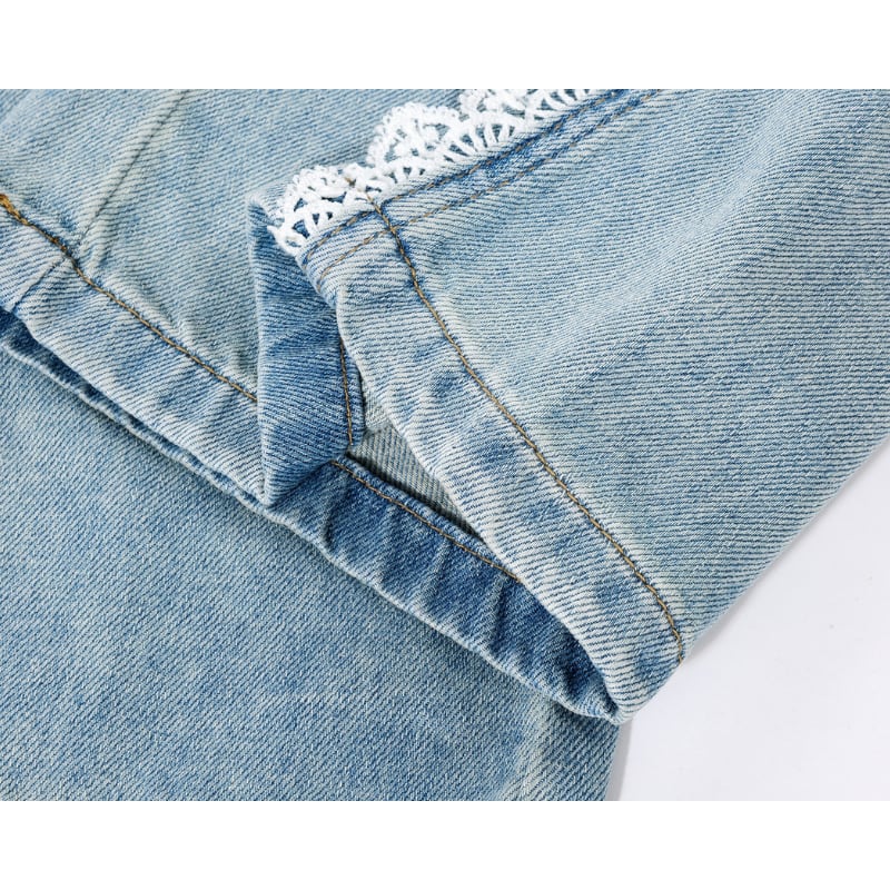 デニムにフェミニンなレースをプラス♡