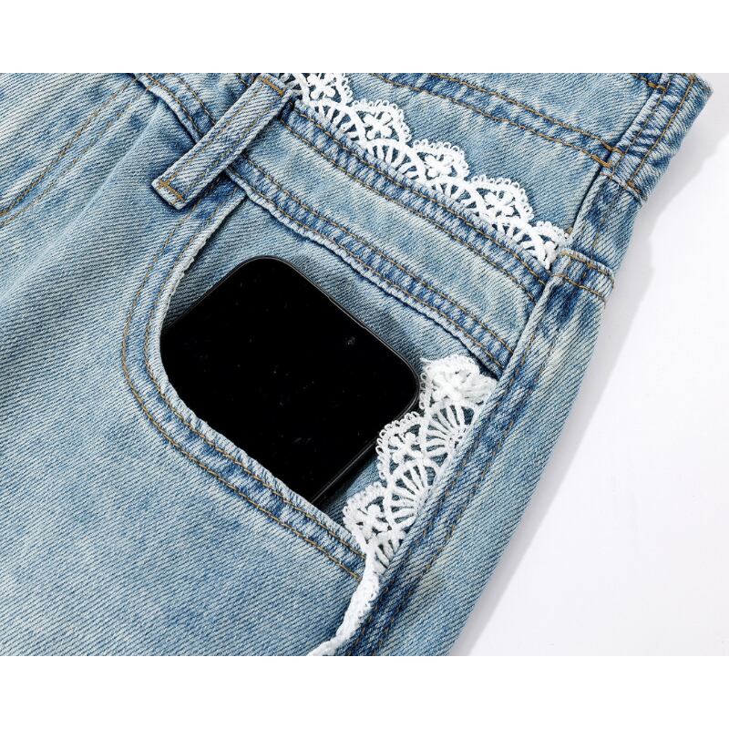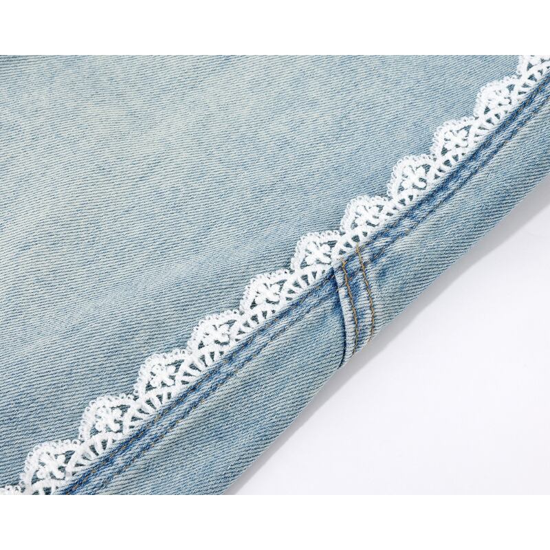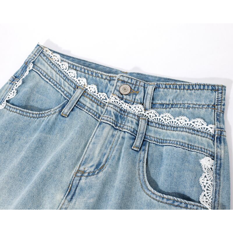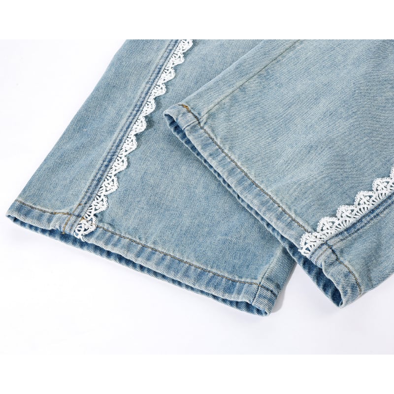 レーストリムワイドレッグデニムパンツ 14021