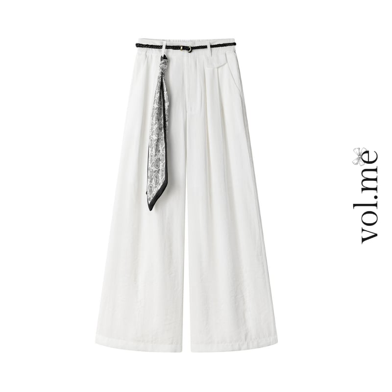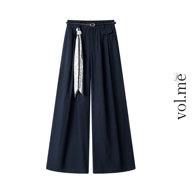 ベルトスカーフ付きワイドレッグロング丈パンツ♢全2色 14022