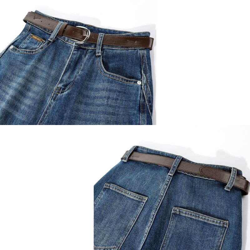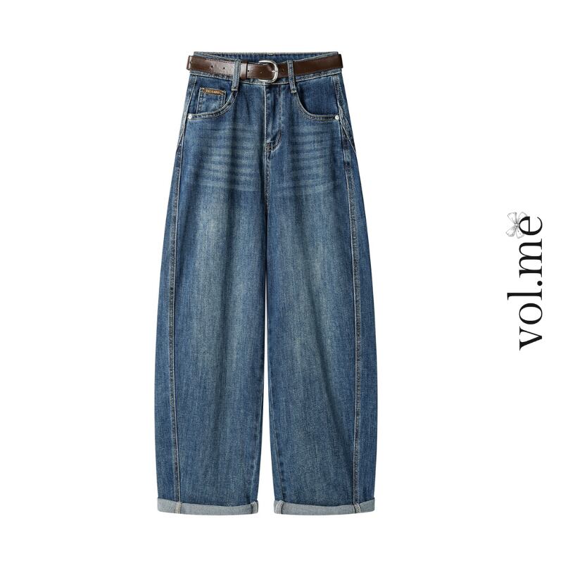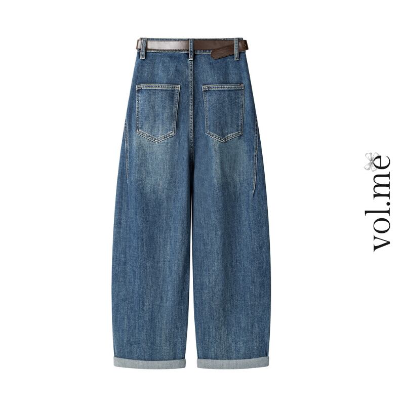 ベルト付きハイウエスト立体ワイドデニム♢全3色 14025