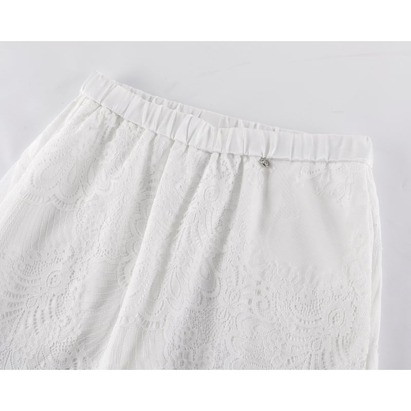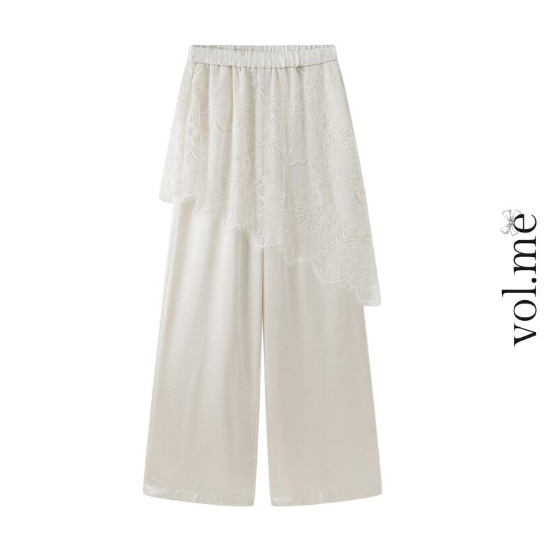 ウエストゴムレースレイヤードワイド パンツ♢全3色 14027