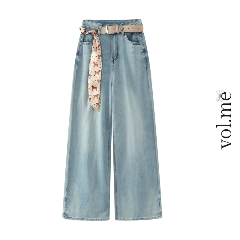 ハート&ホーススカーフベルト付きハイウエストワイドデニム 14028