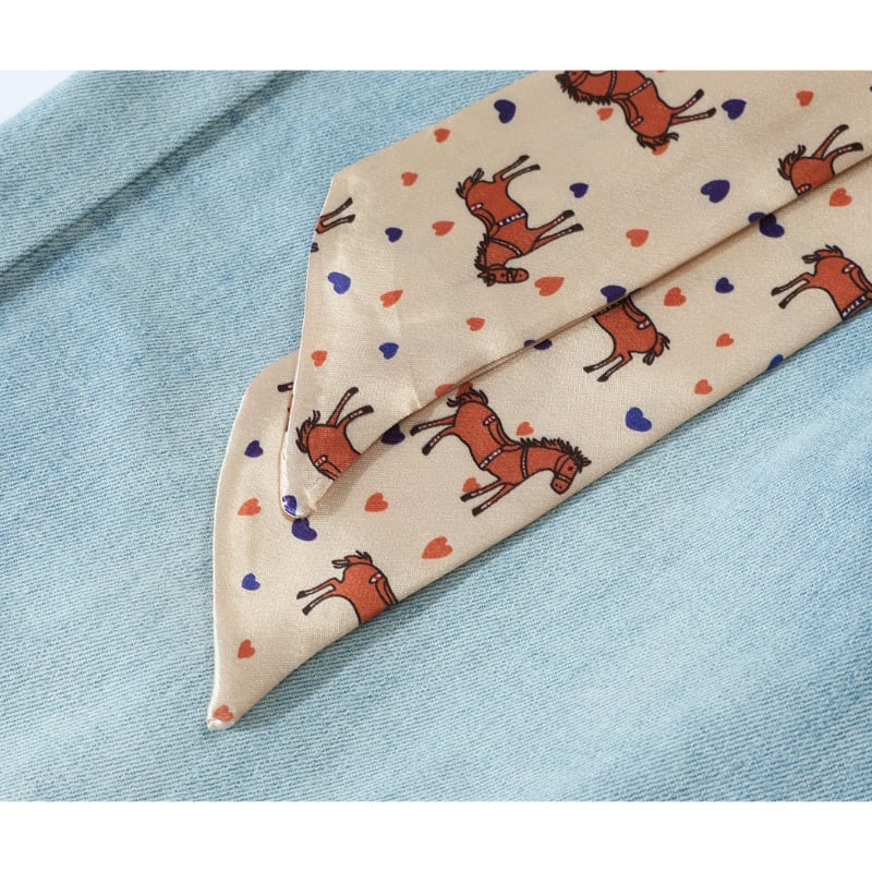 さりげない、遊び心ある可愛い馬とハート柄スカーフが