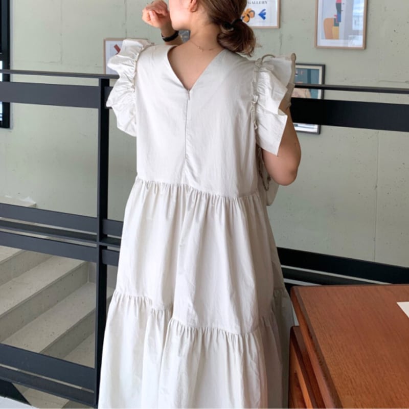 フリルスリーブワンピース♢全2色 10016
