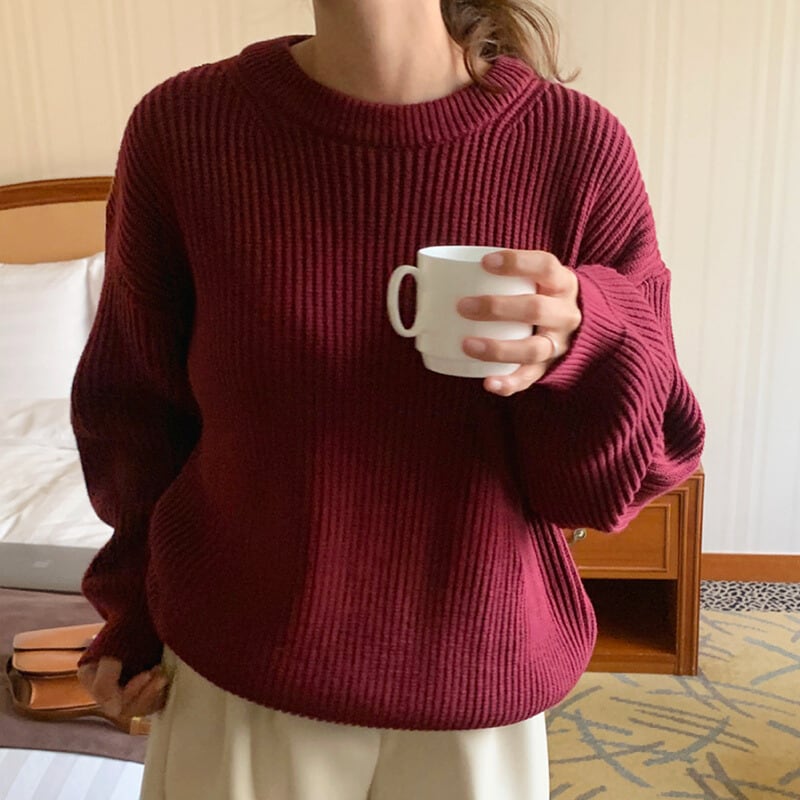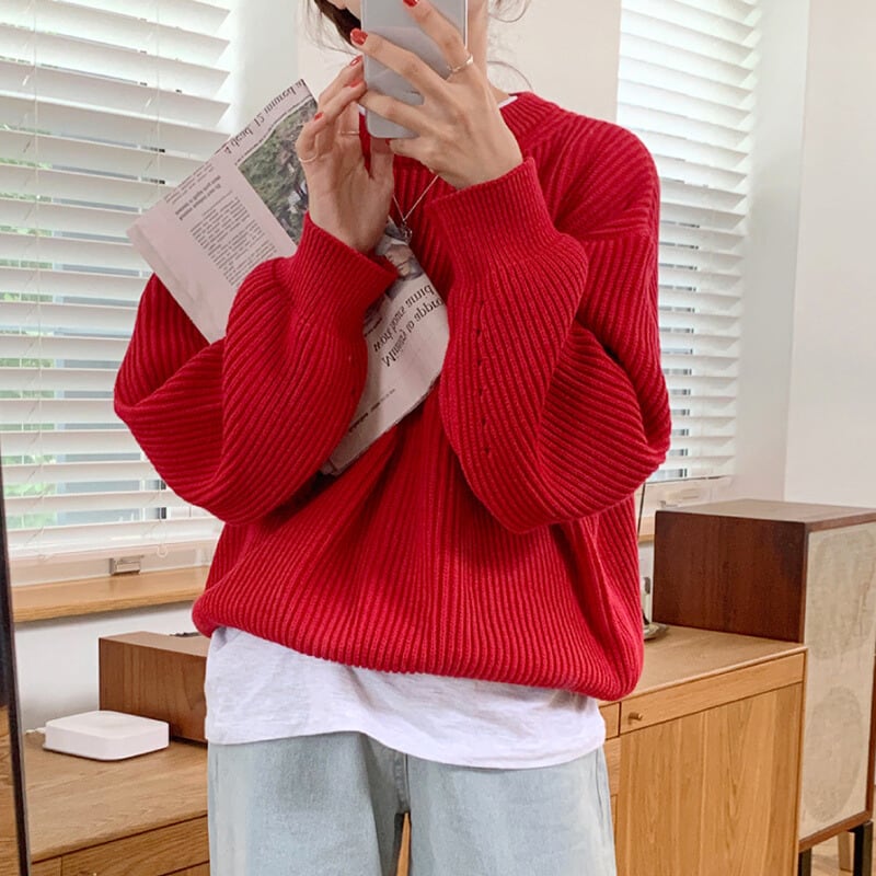 ラウンドネックカラーニット♢全13色 10250