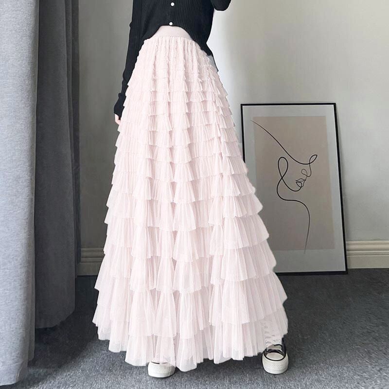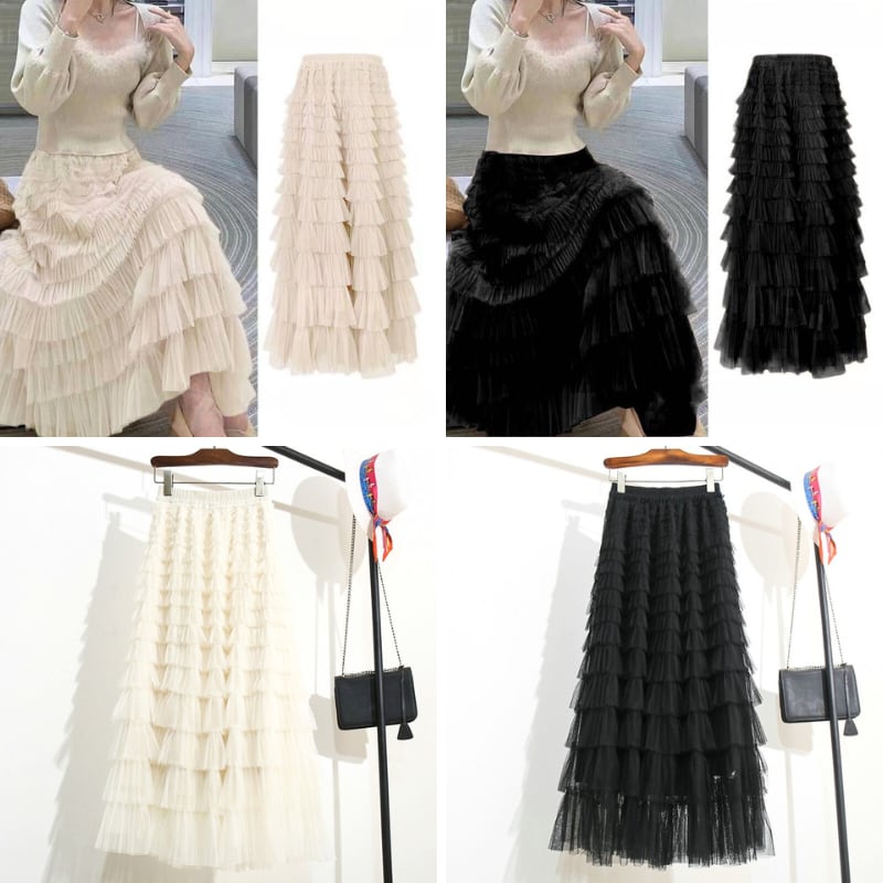 チュールフリルロングスカート選べる丈♢全5色 10460