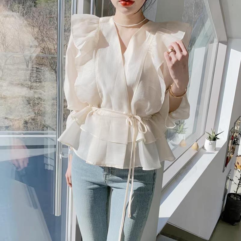 ショルダーフリルシアーブラウス♢全4色 10492