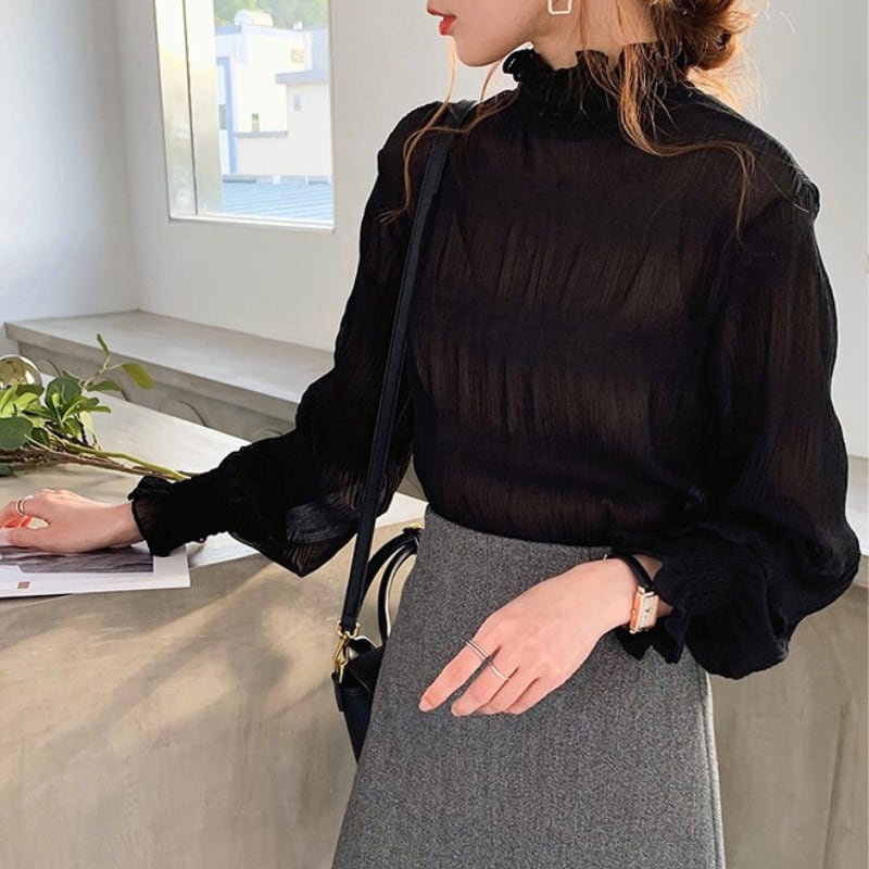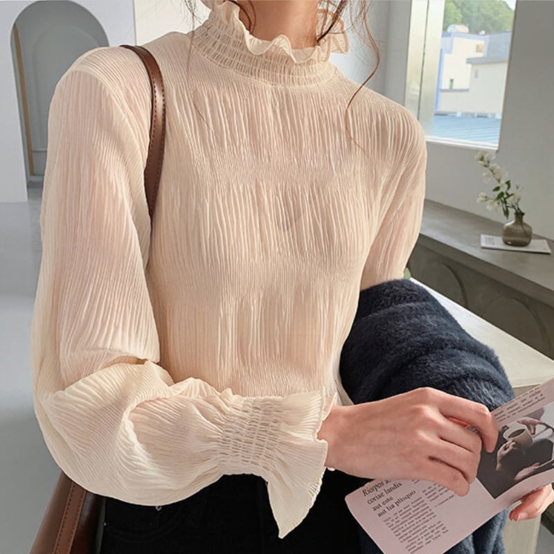 シアーシャーリングハイネックブラウス♢全3色 12015