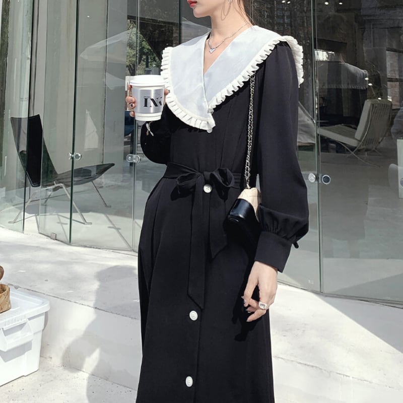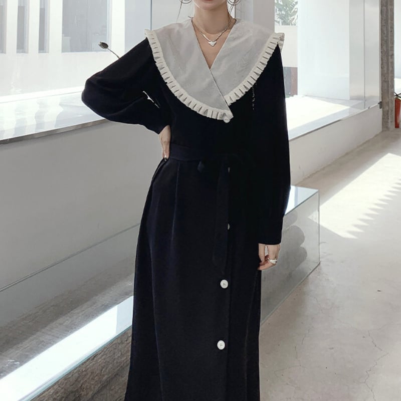 ビッグフリルカラーペンシルスカートワンピース 12067