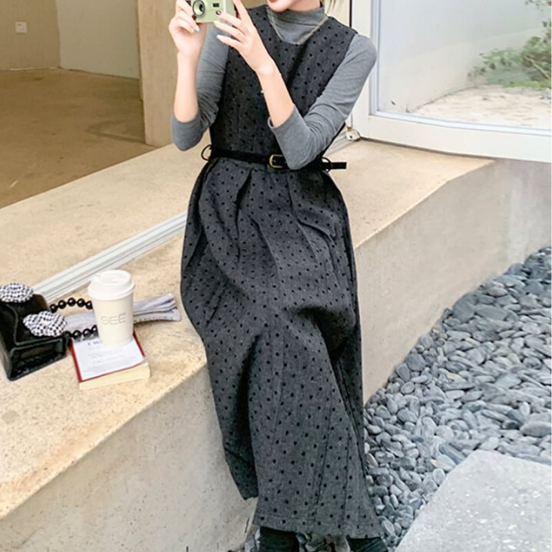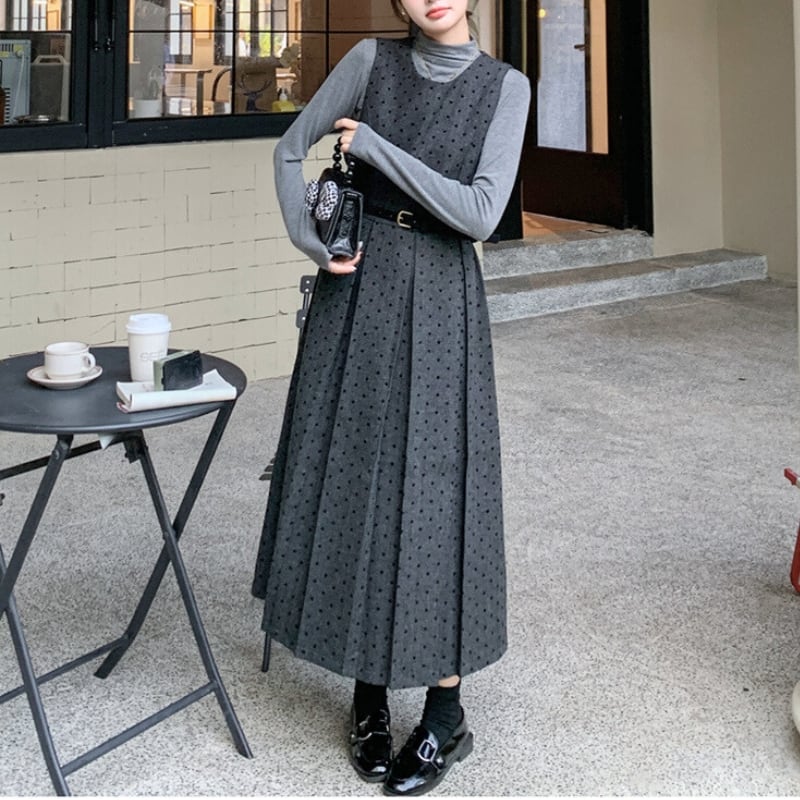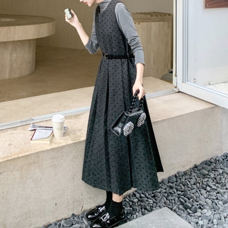 ハイネックトップス+ドット柄ジャンパースカート 12091