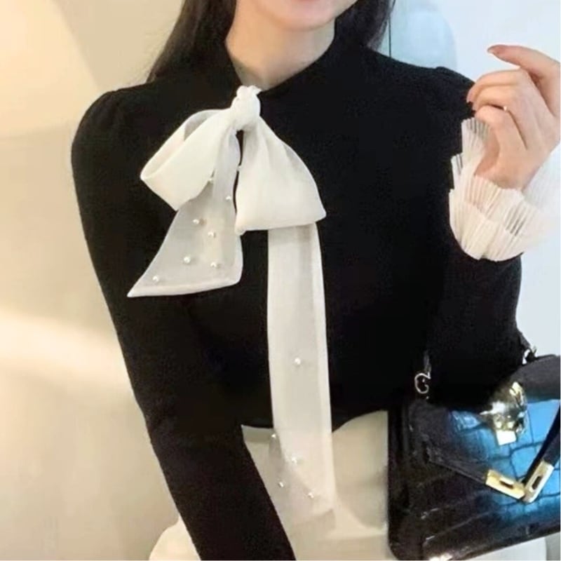 パールリボンアクセントパフスリーブニット♢全6色 12098