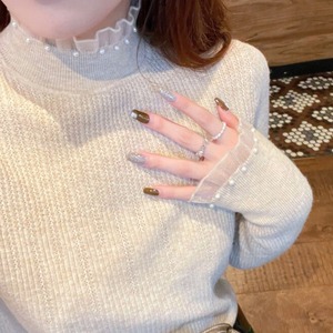 パールが散りばめられたハイネックと