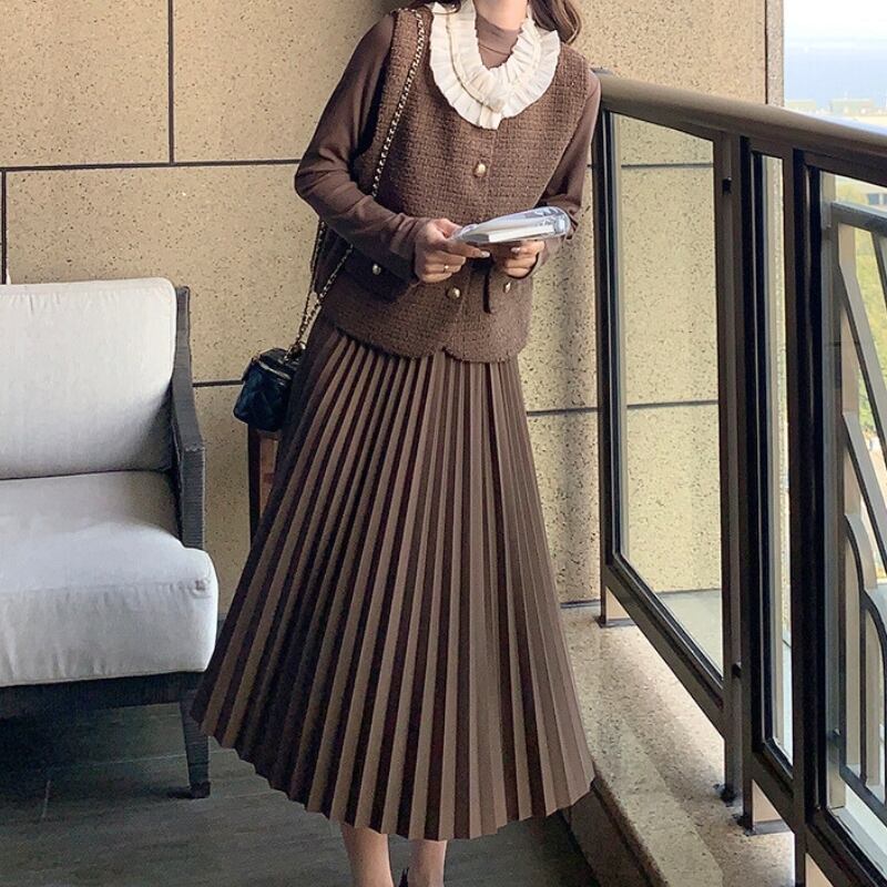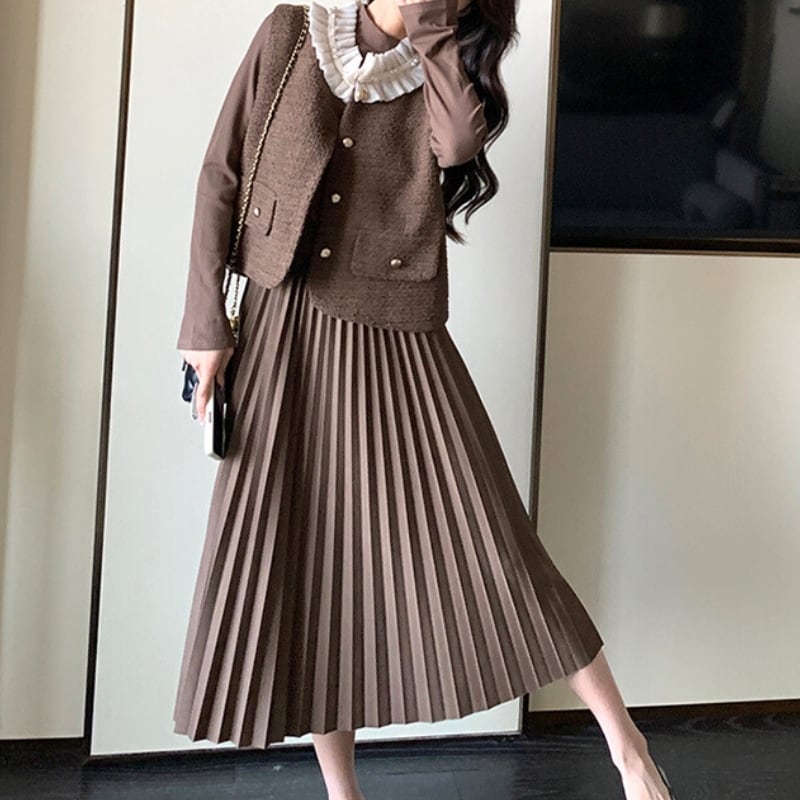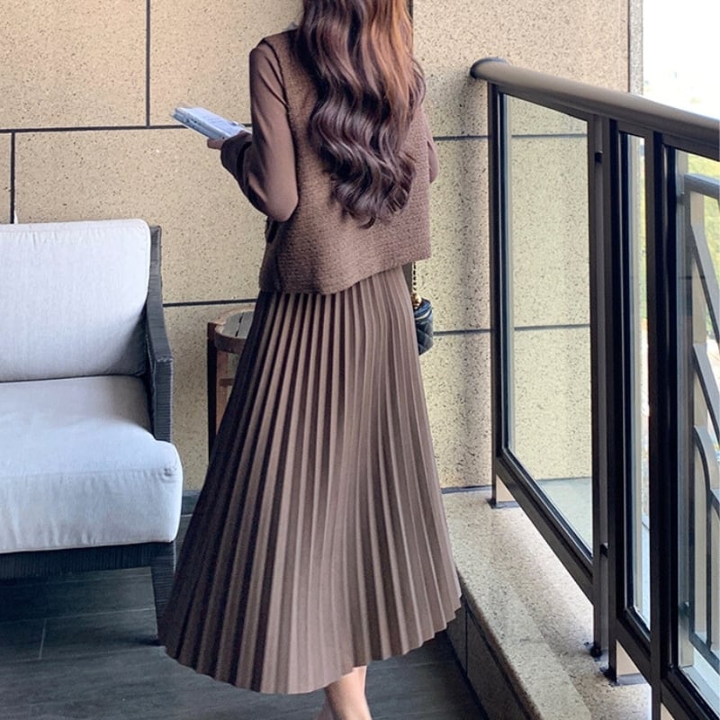 上品なロングプリーツワンピースのセットアップ♡