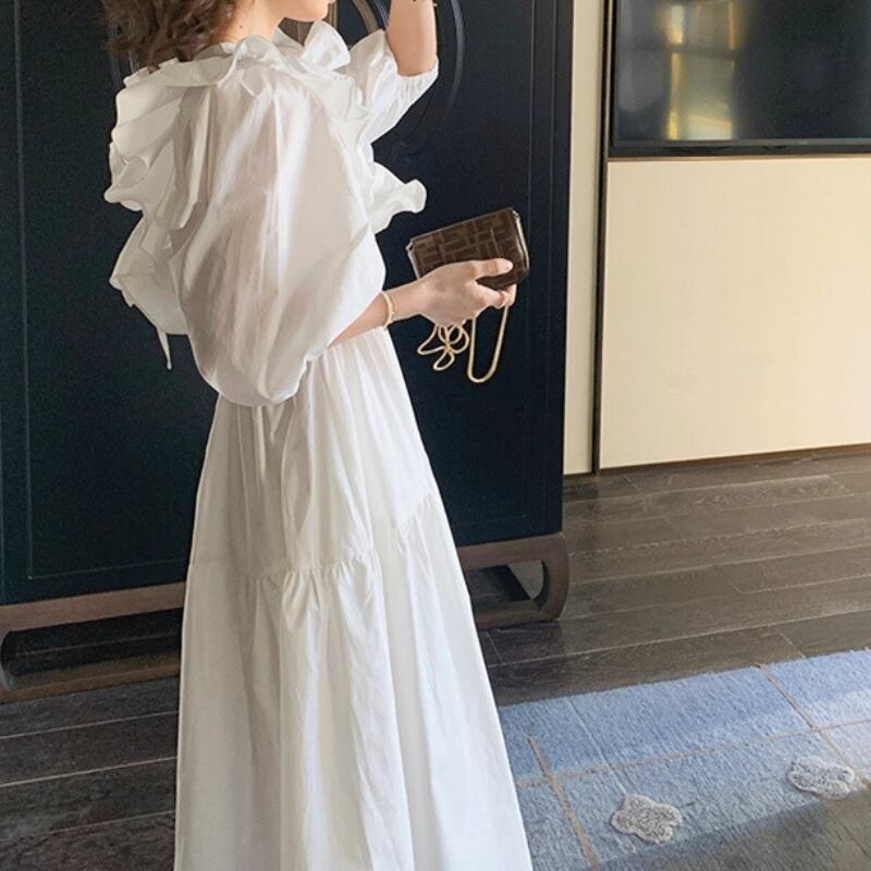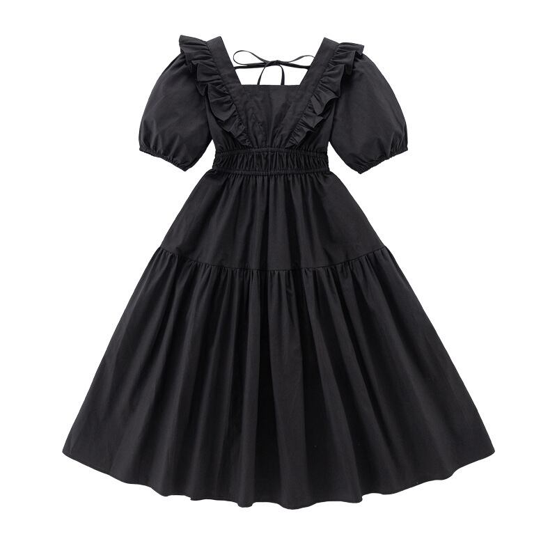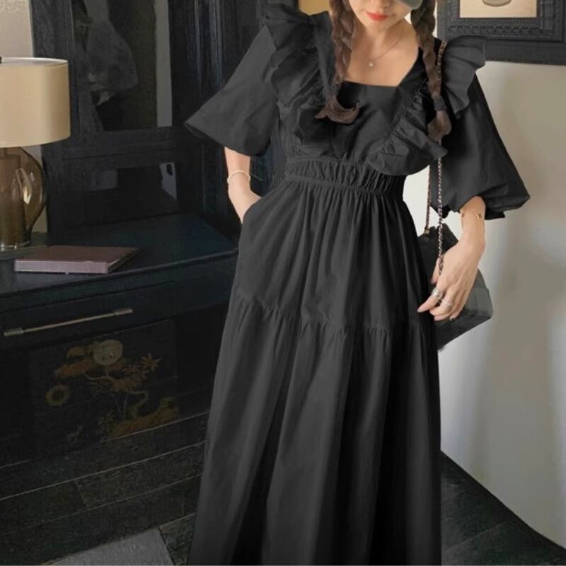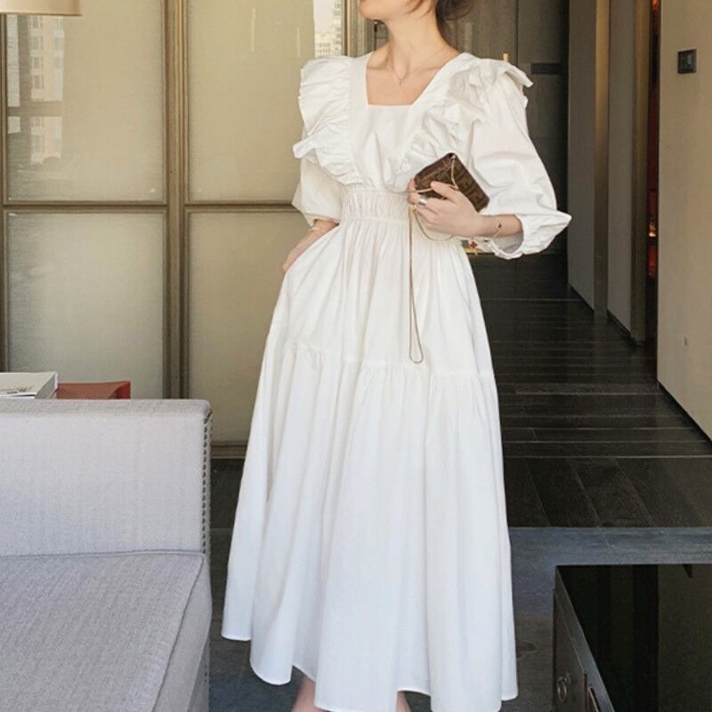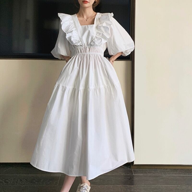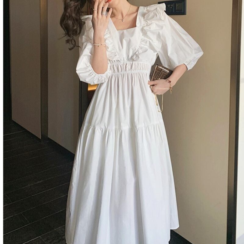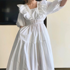 パフスリーブスクエアネックミディ丈ワンピース♢全2色 12171