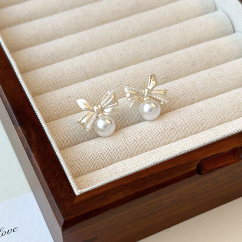 パール付きリボンモチーフピアス 10880