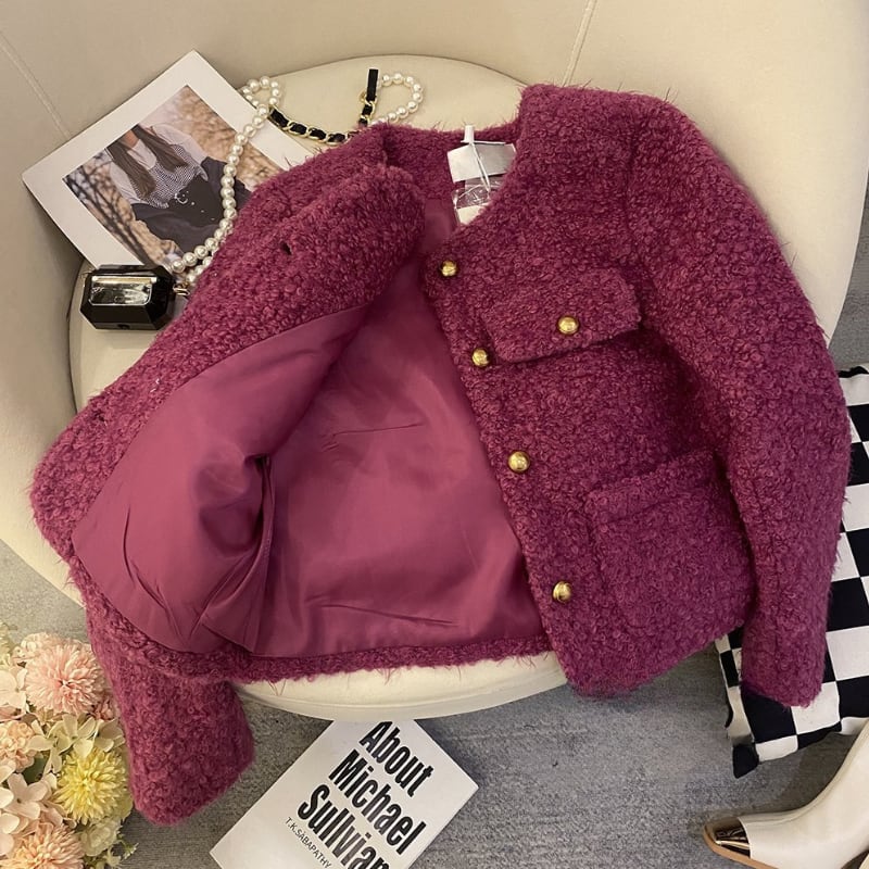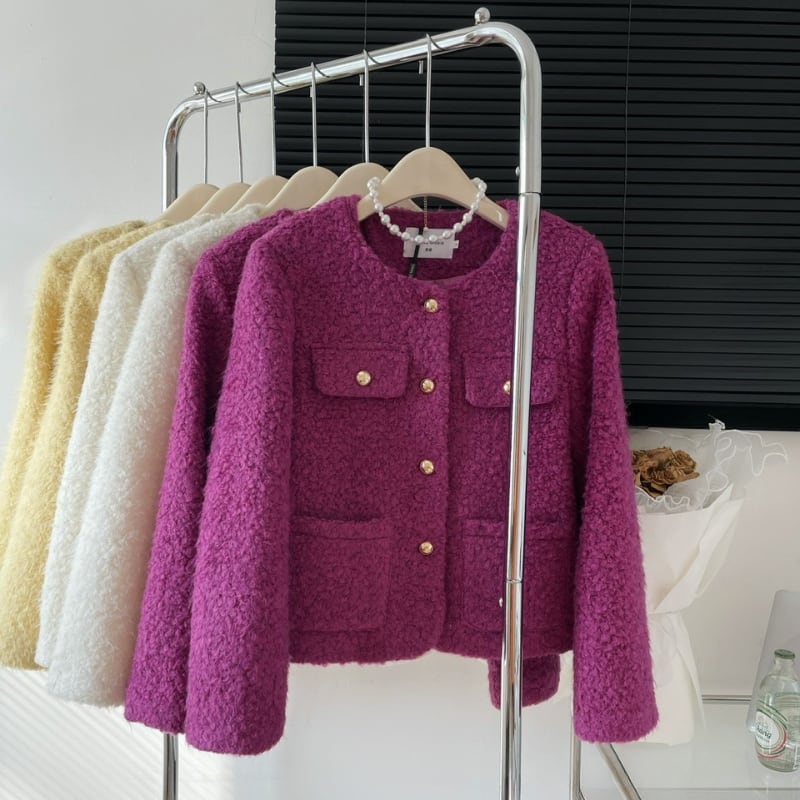 ノーカラーフワフワショートジャケット♢全3色 10893