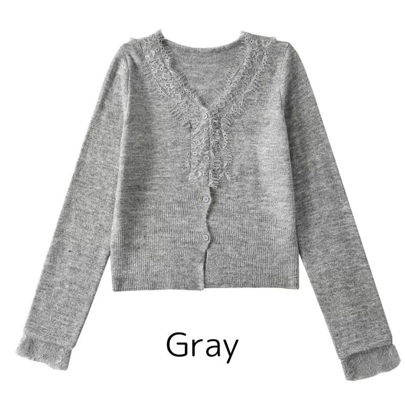 Vネックレース装飾カーディガン♢全6色 12201